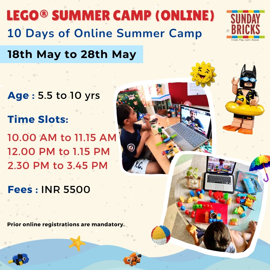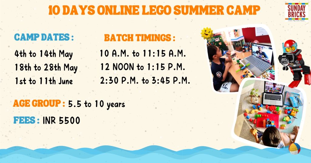 - 10 Days of online LEGO Summer camp – Monday to Saturday sessions filled with interactive LEGO activities.